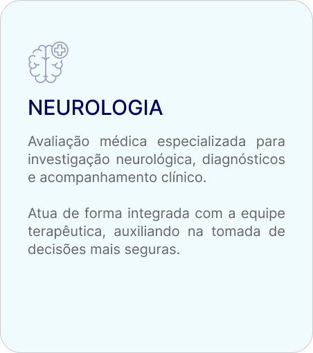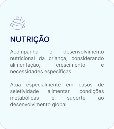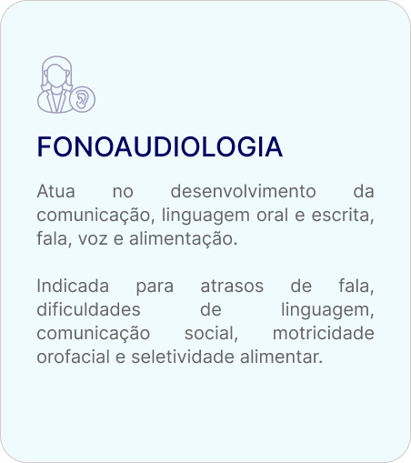 Antes de iniciar qualquer atendimento, a criança passa por um processo de avaliação criteriosa. A partir disso, definimos quais especialidades são indicadas e como elas irão atuar em conjunto.